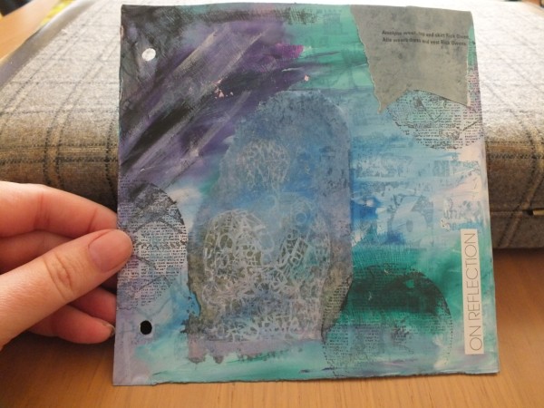 The back of Donna's sewn page painted, stamped and paper added.